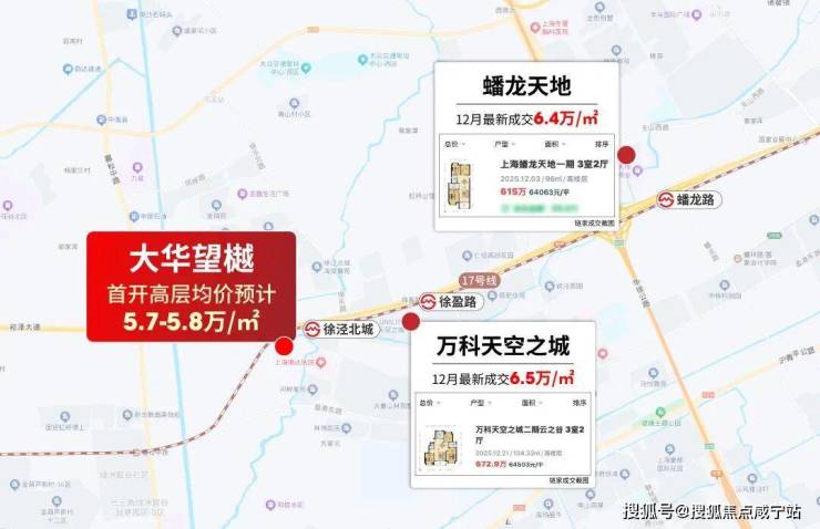 据链家网显示,大虹桥徐泾蟠龙天地12月最新成交价在6.4万/㎡左右,万科天空之城12月最新成交价在6.5万/㎡。