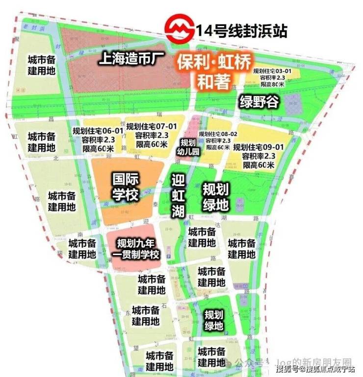 轨交:地块与地铁14号线终点站封浜站的直线距离不到500米,坐一站到乐秀路,未来可以换乘嘉闵线(在建),连接大虹桥、七宝、春申等板块。
