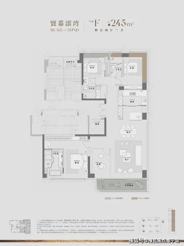 一期125㎡、245㎡都已经是豪宅级尺度设计。以约245㎡江景大平层为例: