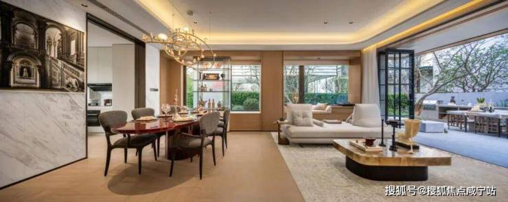 【全景光厅】:下叠一层引入270°全景采光客厅,全明通透的格局邀纳天光云影;庭院花园,盛放自然的万般诗意;闲坐庭院,身心自然而然的松弛。