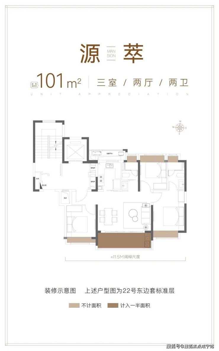 建面约101㎡的3房!