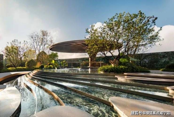 并且将中心场地抬高1米,在水系池底通铺1300多片的PRADA绿石(仿石砖)、精选斜飘乌桕、造型紫薇等名贵树种...