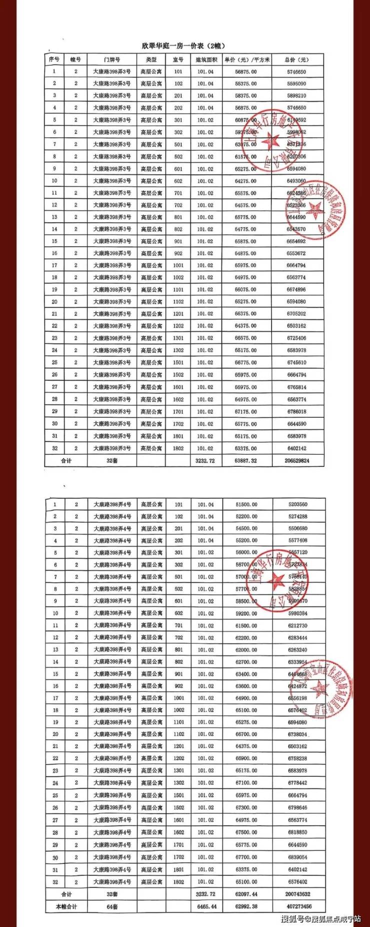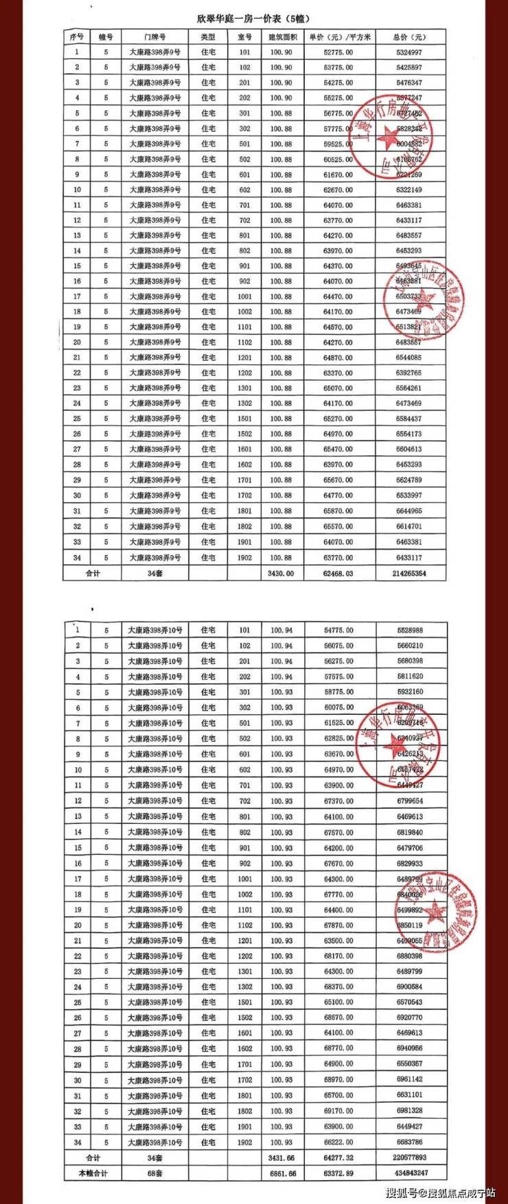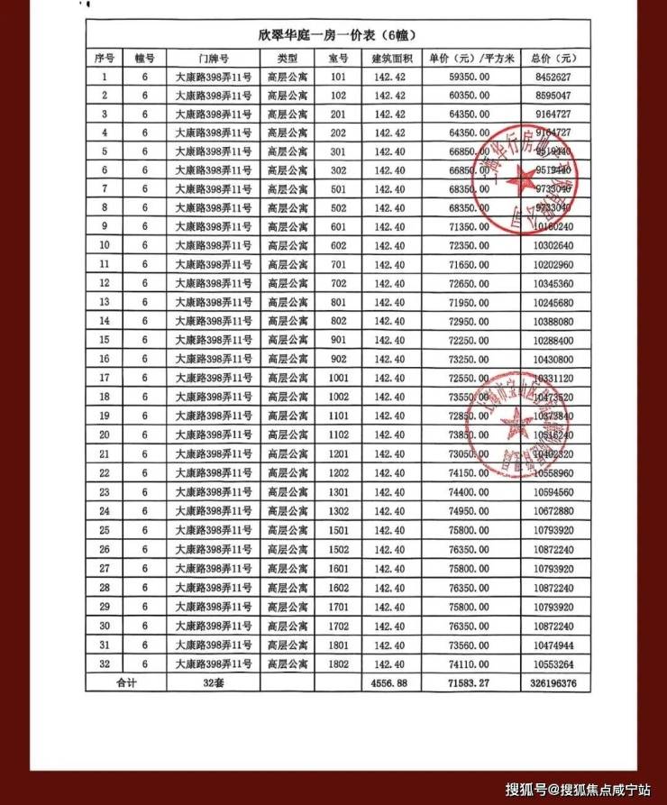 完整一房一价表如下: