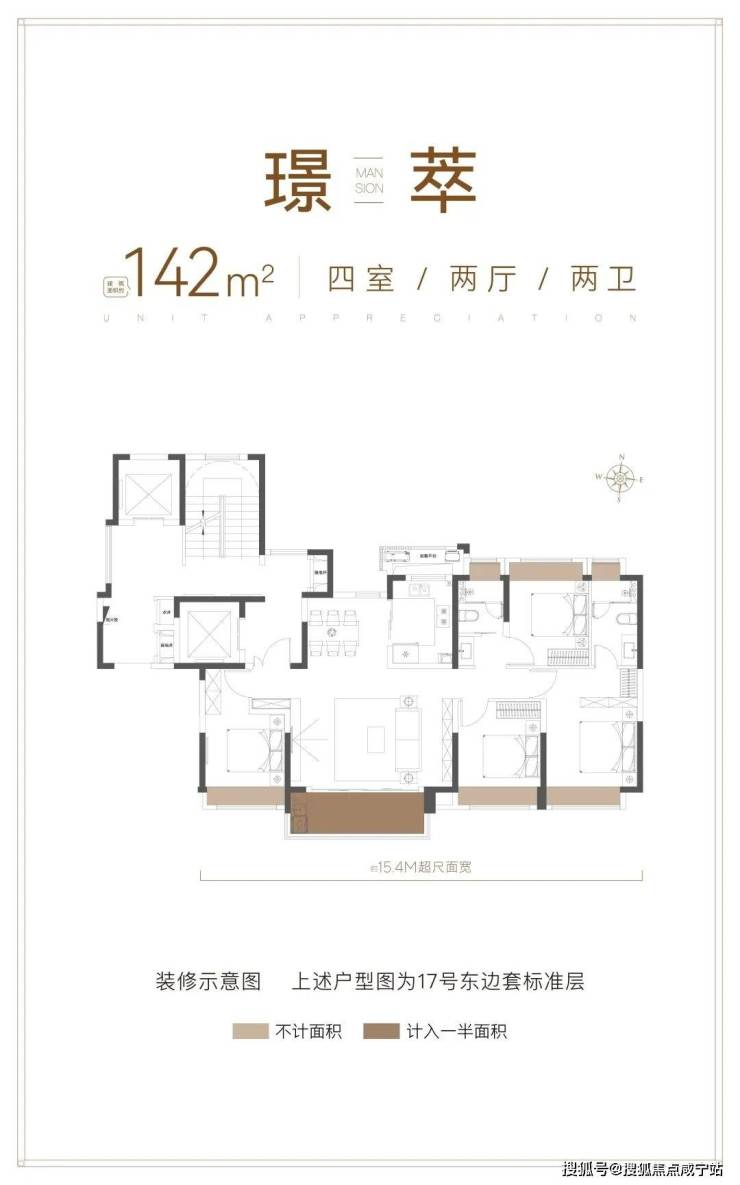 建面约142㎡类一梯一户顶奢4房: