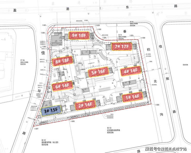 从方案来看,项目多为14-18F的小高层和高层住宅,非人车分流,部分楼栋首层有架空,东面有河道经过,南面规划了一处幼儿园用地(华发代建)。