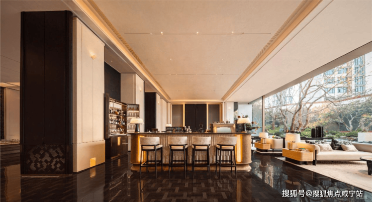 而实景首开的近2000㎡下沉庭院,作为“园林灵魂”,漫步此间,你会看见:乌金原石围合的“玉扣绿岛”上,低调静放着团队自“天下玉源”河南南阳历时遴选而来,近7000年的“国玉”独山璞玉,与山野林木共此氤氲灵气,尽显东方温润;从诗经走出来的近11m高参天乌桕,则再现古诗中所描述的“秋林城郭画图中,乌桕千株照眼红“的诗意;采用约6.7m幻影蓝奢石打造的“叠级水瀑”跌水台,池底以呈现天然墨绿色泽的蓝金刚石铺就,映水之澄明,境之悠远;连台阶都采用了“黑色花岗岩之王”安哥拉黑整石,沿云梯而上,让人返璞内心东方......