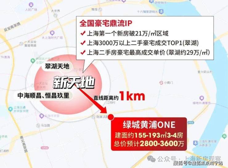 最新消息!老西门「绿城·黄浦ONE」首推推56套建面约155-193㎡3-4房,均价17万/㎡认购金295万!认购时间:10月30日-11月3日;样板房已开放,售楼处线上火热预约中!