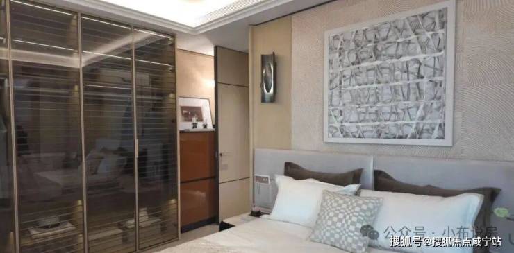 主卧套房面宽约4.8米,采用酒店式配置,配备独立卫浴与超大飘窗,尺度与舒适度俱佳。