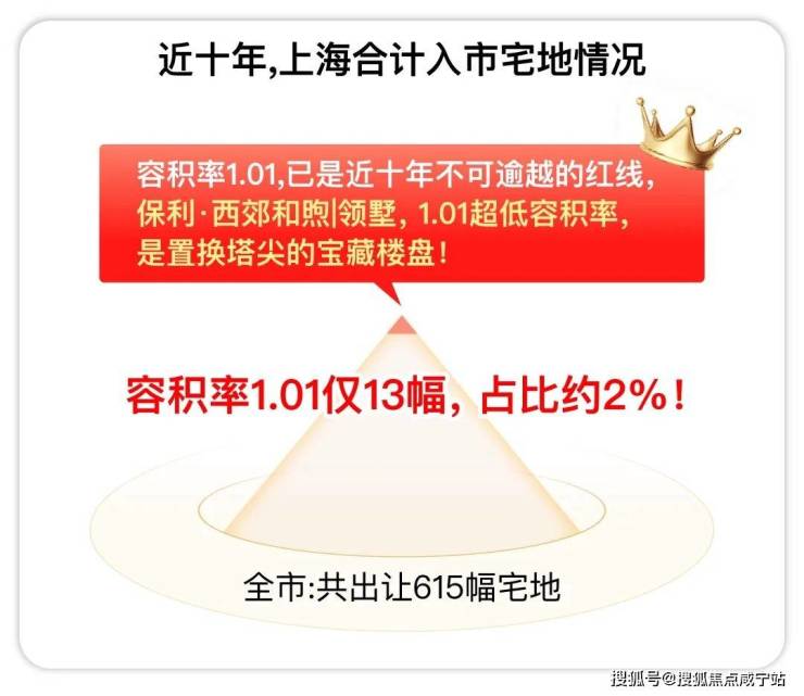 据上海土地市场统计,近十年共出让615副地块,容积率1.01的共13副地块,占比仅约2%;容积率低于1.01的,供应量为0!