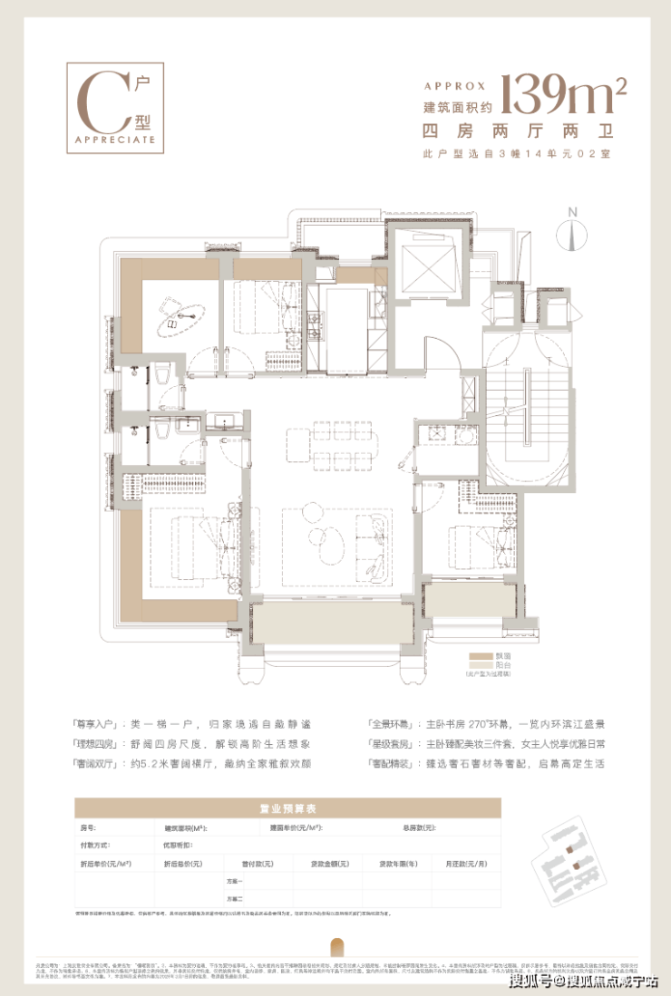 保利外滩曜的建面约139㎡户型,是项目仅2#、3#西边套才有的限量产品。