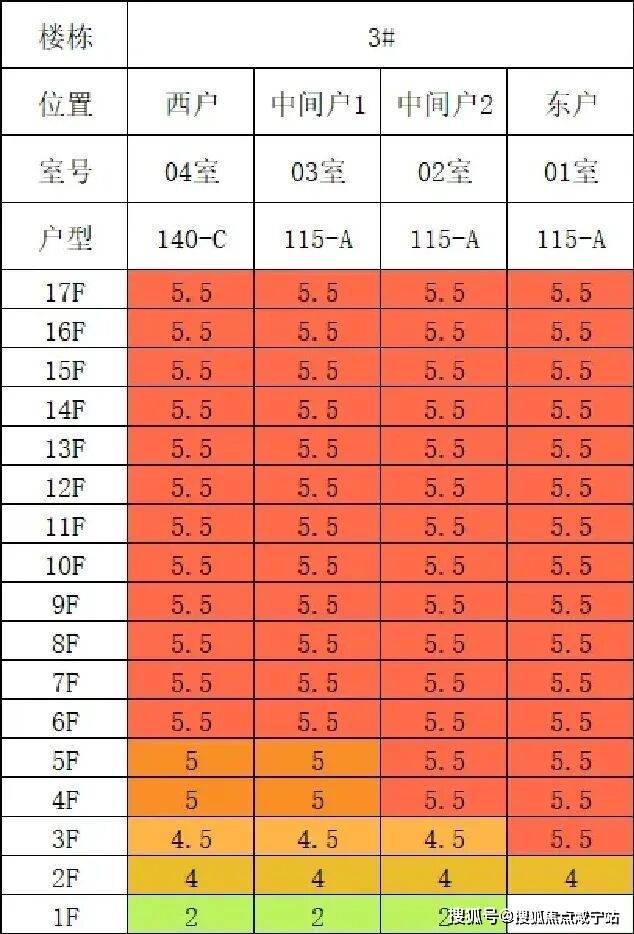 从3号楼一房一价表来看,东单元建面约115㎡户型,在保证楼王核心优势的前提下,价格真的很有诚意:
