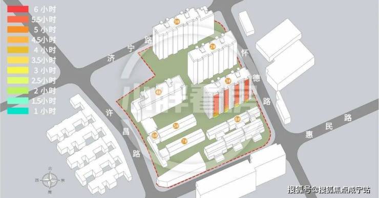 这是冬至日(9-15时)3号楼的日照采光,可以看到,除了一楼二楼,几乎是完全拉满的状态。