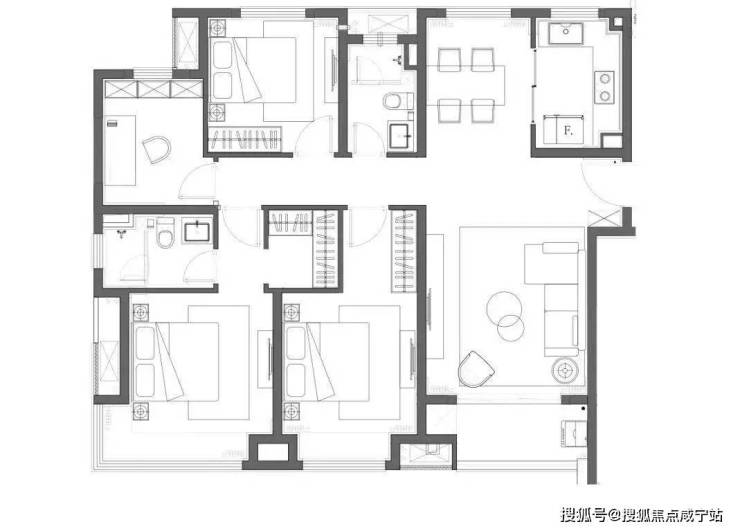 建面约128㎡四房
