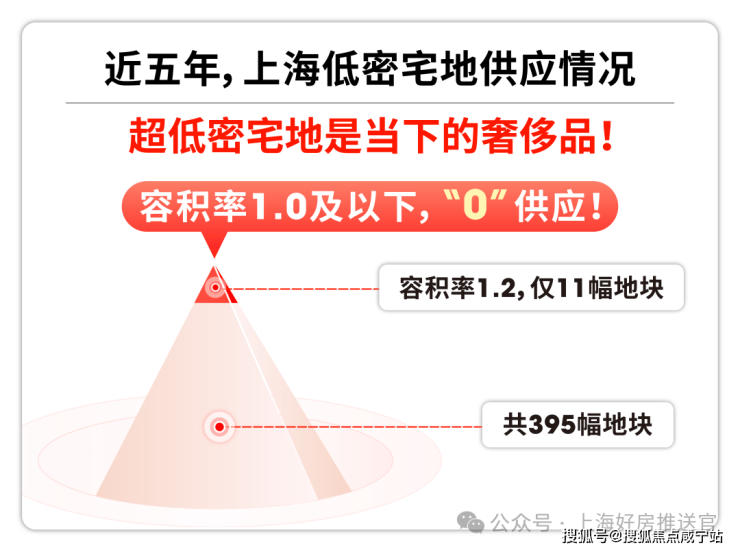 近五年,上海共出让395块宅地,其中,容积率在约1.2以下可以用作开发低密宅地仅有11副。而容积率1.0及以下可以用作开发纯墅区的地块,供应为“零”!