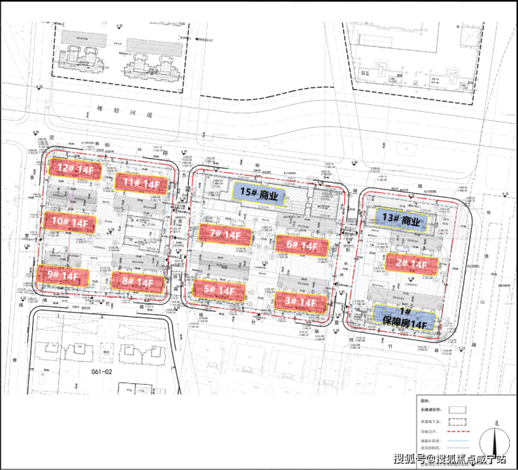 根据项目规划设计方案,拟建11幢14F住宅(含1幢保障房)、以及商业、配套用房等建筑。
