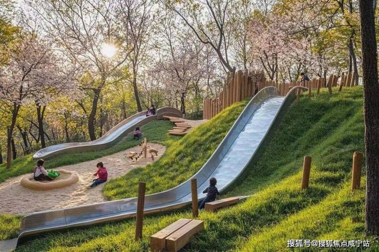 首创无界交互草坪文化,利用坡地差打造互动体验空间,融合宠物乐园、野餐区、冥想角等功能,重构人与自然的亲密对话
