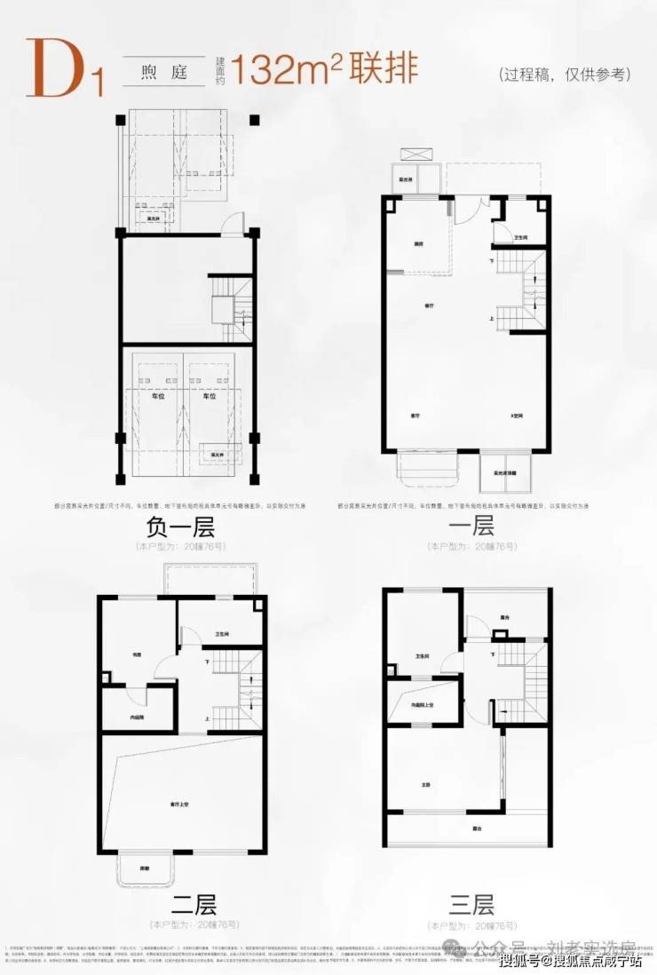 建面约132-195㎡联排别墅,一院一厅间的无界私院,拥有前庭后院+超大挑空+南北双星空露台+室内庭院等超享空间。