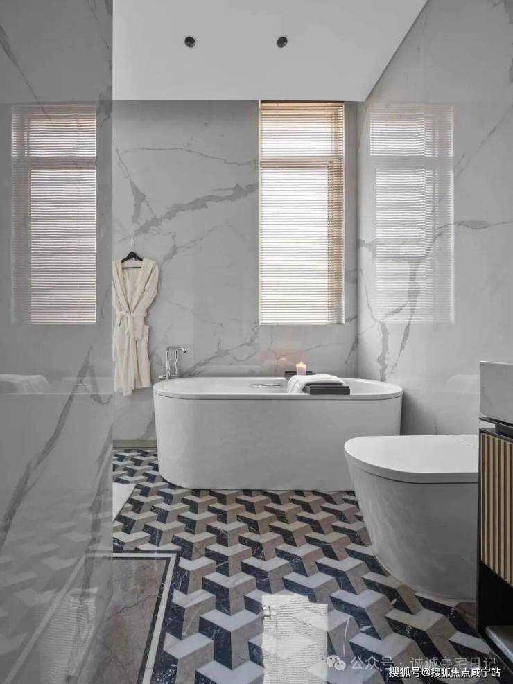 5、卫生同:石膏板吊顶,刷涂料,地面铺石材或诺贝尔品牌地砖,墙身贴石材