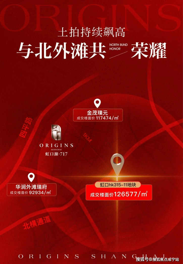 ✅虹口源·717售楼处电话:400-8800-703✅︎✅︎✅回顾北外滩土拍史,板块地价的跳涨绝非一时喧嚣,而是一步一个脚印,走出了一条漂亮的攀升曲线。2024年11月,华润置地51.36亿拿下北外滩新地块,楼面价92934元/㎡,溢价率11.97%。四个月后,金茂&庆隆以89.64亿元摘得新地,溢价率冲至38.2%,楼面价高达117474元/㎡。再到本次土拍再破纪录的126577元/㎡,每一次落槌,都是对北外滩价值爆发的坚定投票。如今虹口内环再添“地王”新丁,为本就热势难挡的“四平路三兄弟”再加一把“火”,豪宅扎堆,成为上海置业圈内新的热议话题。