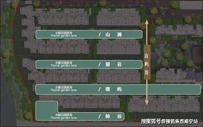 三进四大主题墅级归家场景。以山澜、望云、礁屿、秘谷四大主题景观统一打造雅奢度假风格,让业主尊享星级归家体验。