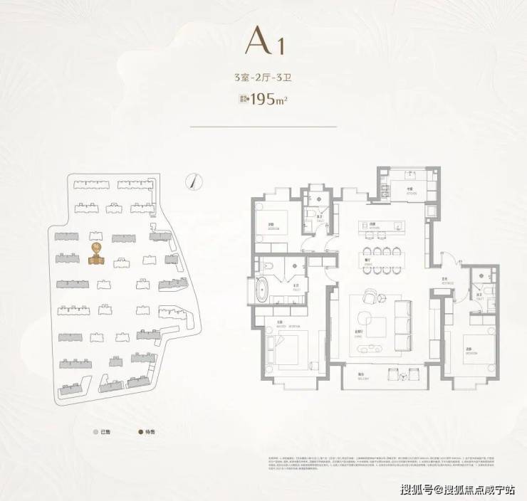 第三,首次入市的顶序产品,建面约195㎡3房。