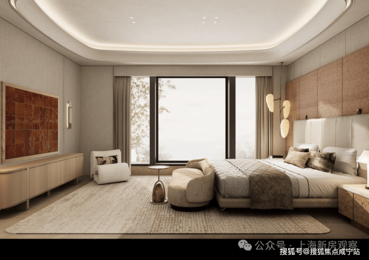 主卧建面约25㎡,自成一方小天地。除了设计有干湿分离的卫浴空间,还特别打造了步入式衣帽间,满足主人的“收藏欲”;加之南北通透的布局,连接双联阳台,阳光浸润生活,清风鲜活呼吸。
