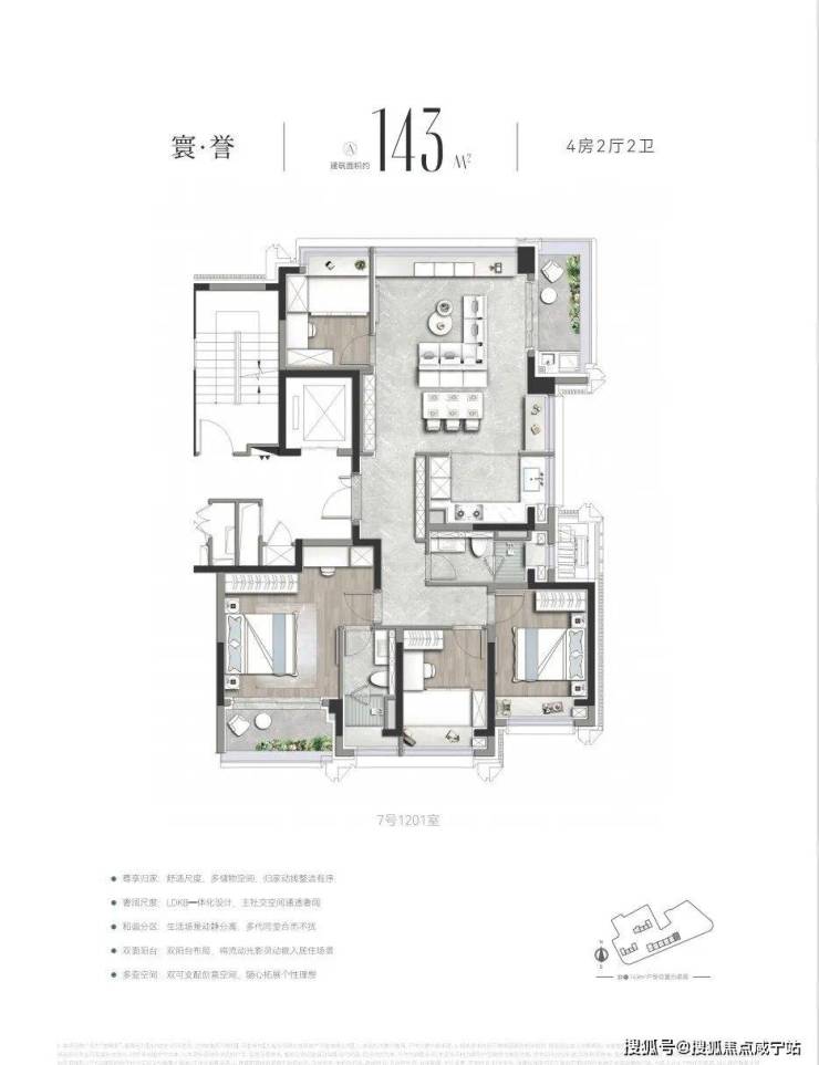 作为上海首批“好房子”新规落地范本,「誉静安」未止步于单一标准的复刻,而是深度贴合上海高端家庭需求,开创性打造3.5 代宅,其约143㎡宽奢四房堪称“空间教科书”——