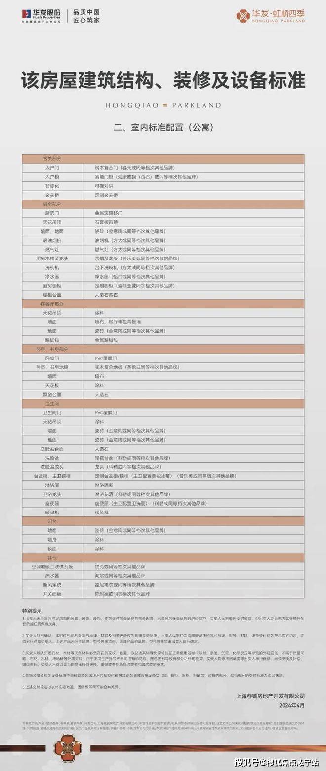 更有霍尼韦尔(或同等档次品牌)的新风、方太(或同等档次品牌)的油烟机和洗碗机、科勒(或同等档次品牌)的龙头和台盆、百年约克、圣象、施耐德等(或同等档次品牌)其他品牌国际一线品牌为生活保驾护航。