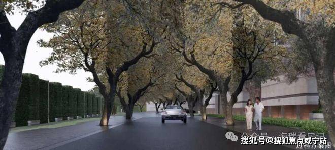比如,规划道路上的香樟树,要选择合适的树龄与尺寸,项目花了数月才找到10棵合格的。围墙间隔的紫薇树,也是千挑万选而来~