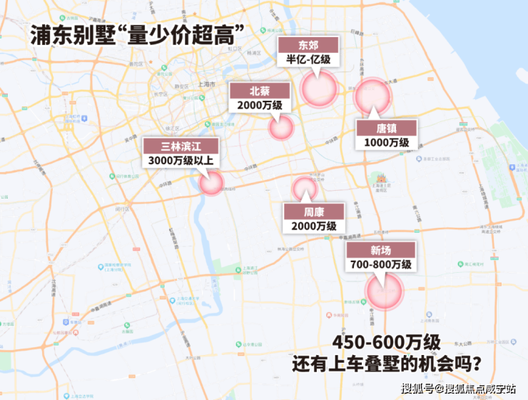 我标注了近两年浦东有别墅供应的区域,外环内基本2000万起步,唐镇1000万级,甚至你买到新场都要700-800万级。