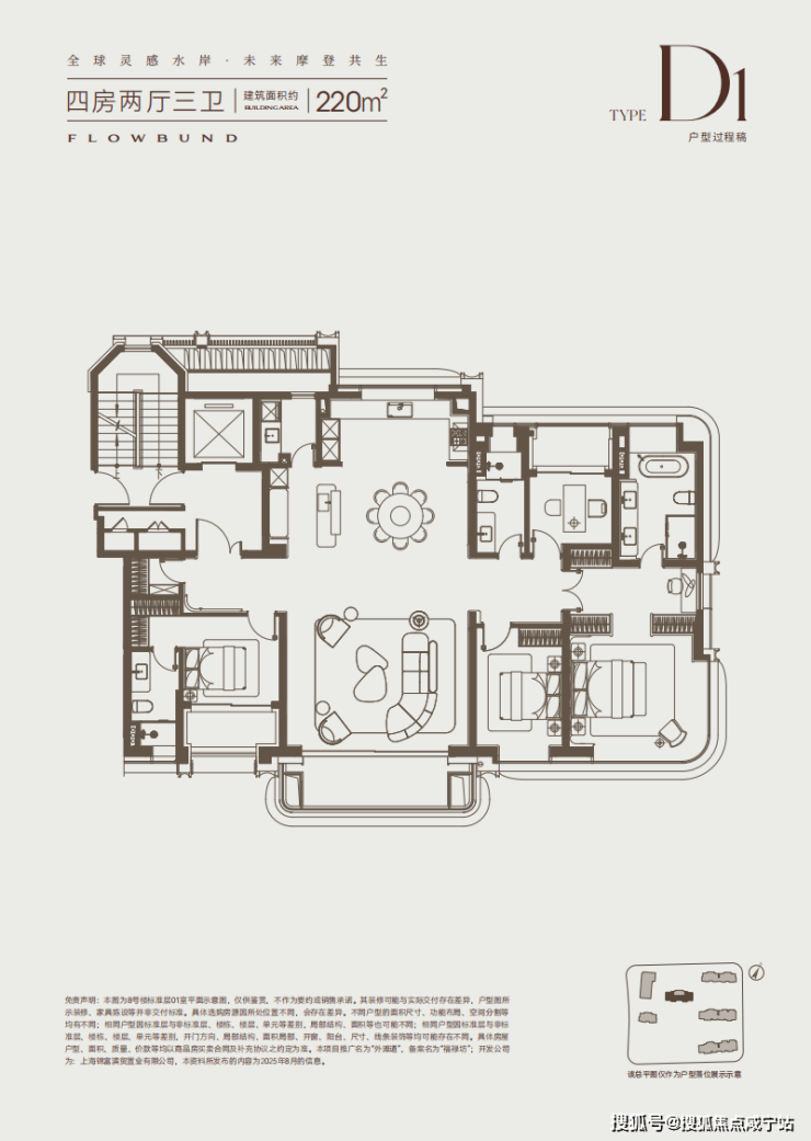 建面约220㎡产品位于整个社区的楼王位置,南北毫无遮挡,坐拥一线江景+社区中央核心景观带,视野拉满。