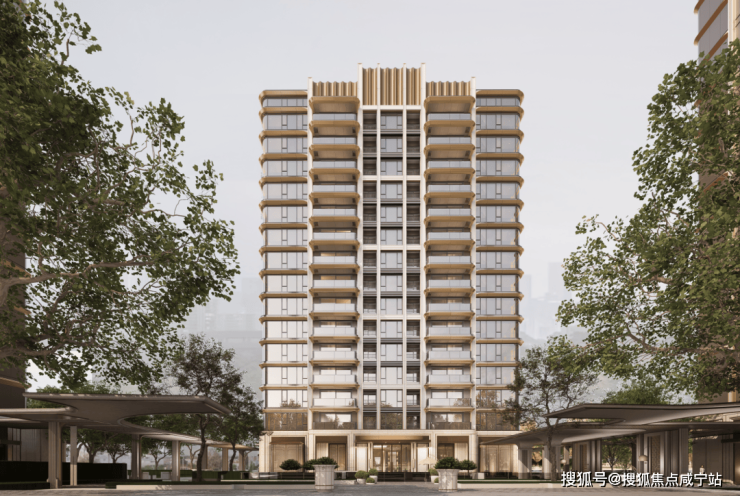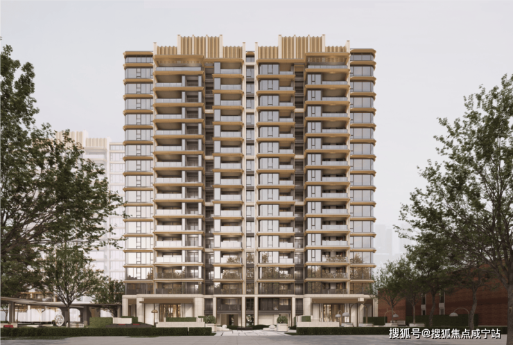 首先,外滩道所有楼栋立面的四面,均采用统一的高品质材料与工艺:浅色石材、香槟金铝板、LOW-E玻璃。