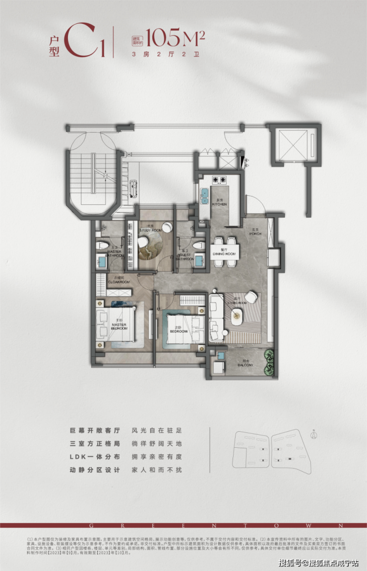 绿城·留香园,全铝板外立面,主打前厅后院的院落秩序,二期推出300套建面约88-102㎡2-3房,均价61878元/㎡。