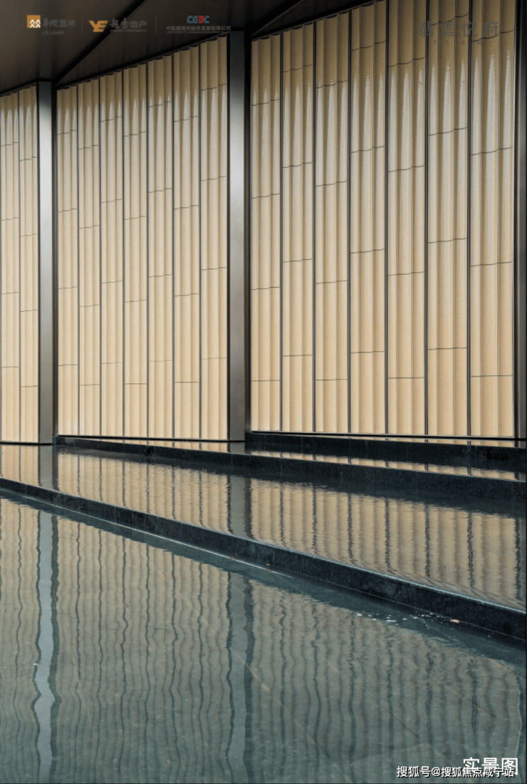 前场中央车站用大面积冰裂琥珀釉陶板打造,工匠历经上百次尝试,才找到 1175℃的最佳烧制温度,实现弧形釉面的通透美感;蜂窝铝板采用不打胶工艺,不惜成本只为业主归家的 “排面感”;