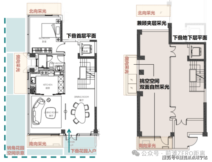 在这个立体空间体系中,摒弃了叠加别墅中资源更加集中在下叠、而忽略上叠居住尺度的传统设计,而是做到了史诗级的创新,实现真正的平权——