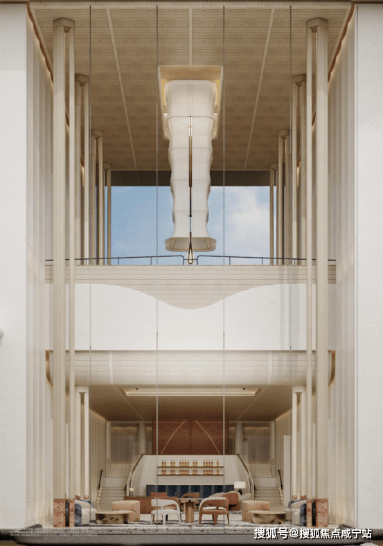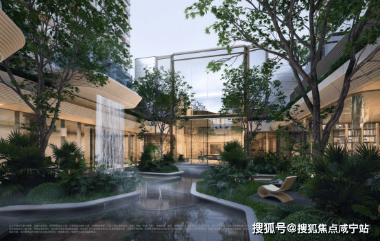 整个社区通过地上地下丰富动线串联下沉庭院、局部风雨连廊、戏水池、行车橱窗、垂直森系景观、嵌入式会所功能,创造一座立体视觉奇观的“漂浮的绿洲”。