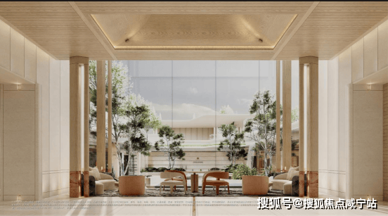 约87米艺术门庭,以奢华酒店式场景为设计理念,选用著名风貌作品“康定壹拾玖”同款沙漠风石材,作为经典葡萄牙米黄的升级石材,大面积运用整体空间。