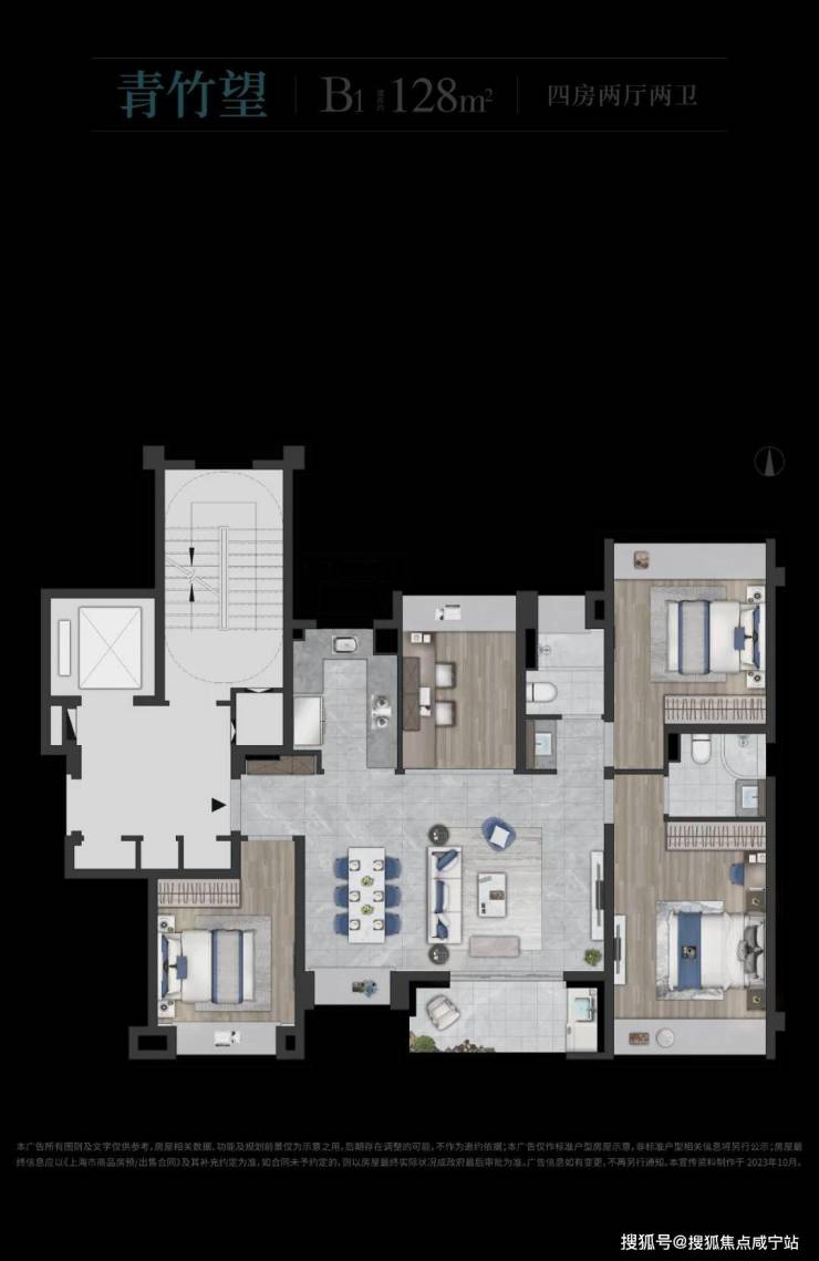 建面约128㎡的四房设计,在空间上使用功能更加扁平化,一站式解决了家庭生活的所有功能,优化居家动线,大大提升空间的居住体验。