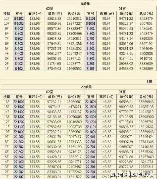 浦发莲园四期一房一价表: