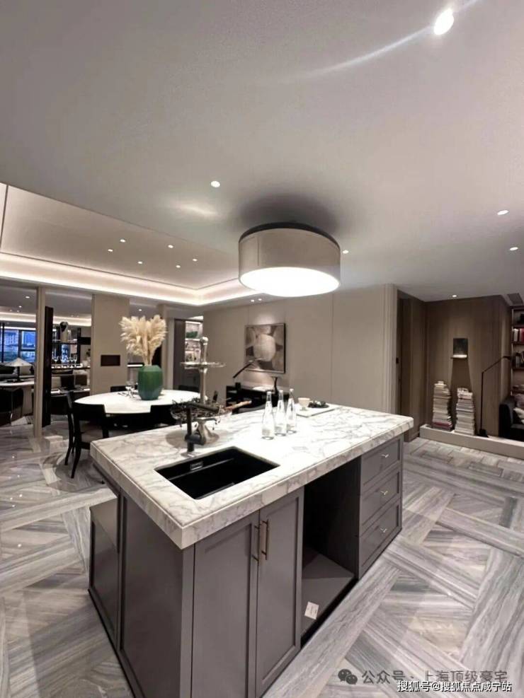 万科中興傲舍凝聚72种高端豪宅都难得一见的奢材,如皇家白奢石、Prada绿皮革面奢石、砖纹定制铝板等等,每一处细节都透露出精致与考究。