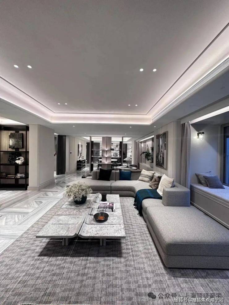 比如,弧形、奢石与灯光等相得益彰且设计感满满的架空层。