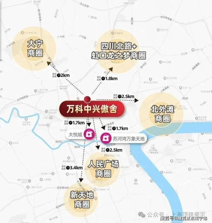项目周边环伺南京路商圈、陆家嘴商圈、静安寺商圈、苏河湾商圈、四川北路商圈、大宁商圈等多个市级商圈,居住氛围成熟。