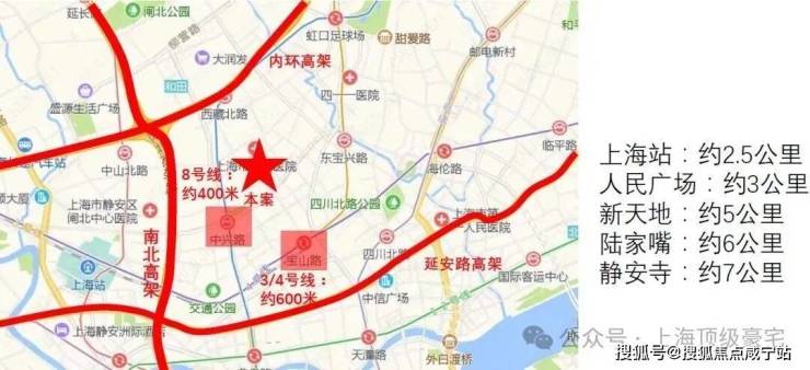 自驾方面:项目毗邻南北高架、内环高架,距离南北高架永兴路口仅500米,可快速到达苏河湾、人民广场、陆家嘴、静安寺等多个市级商圈,出行便利。