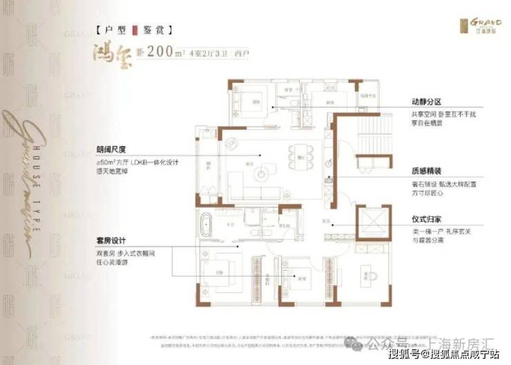 江湾鸿玺主推建面约200㎡豪装大4房,仅有32席位,总价在1500万级,或是中环旁错过不再有的“一步到位”纯改善产品。