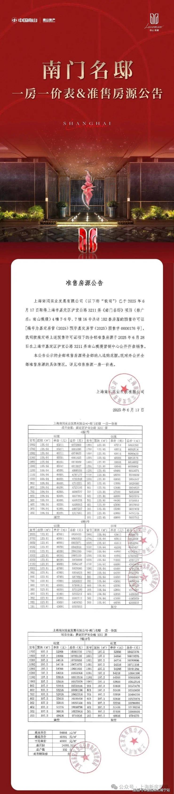 最新消息!嘉定南门,国匠南山2024年度封面之作「南山·璞缦」四期加推102套建面约106-198㎡3-4房;均价48901元/㎡!认购金30万;认购时间6月19日-6月23日!往期少量建面约106-123-144㎡3-4房,,最低单价仅34040元/㎡,总价367万起,首付55万起!售楼处线上火热预约中!