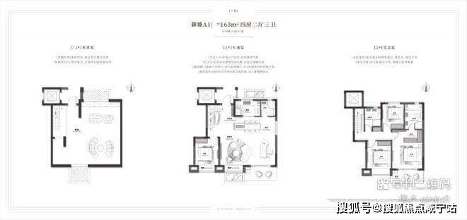 上叠:实现2+1房2卫设计,长辈房位于三层、配卫生间,规避上下楼梯的麻烦。南向阳台与餐客厅一线贯通,享受充沛阳光。四层豪华主卧、北侧连接露台,空中露台及顶层阳光平台,可量身定制成一方幸福天地。