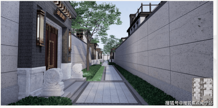 传统庭院对照壁情有独钟,它既让庭院与外界保持空间独立,也寄托着中国人的归家情结。浮雕照壁取材名家名作,凸显大院的古雅气质,并与院门内景观产生对景效果。