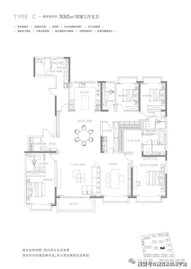 纯粹大户型:主打190-330㎡的大平层,梯户比为1:1,保证了私密性和居住品质。得房率高达78%-80%,空间利用率很高。
