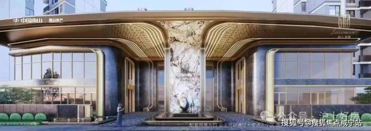 墙体采用约雪山蓝石材,搭配香槟色铝板,普拉达绿石材、安哥拉黑石材、真石漆保温一体板与大面积落地玻璃,叠水小品迎宾启幕归家礼序。景观雕塑,将“缦奢归璞”所追求的圈层礼制得以具象。敕造奢阔实景,境现嘉定主城高阶圈邻。