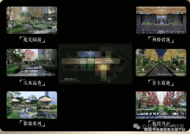 项目园林对轴线的运用同样出彩,堪称神来之笔的“双轴六境”,由“礼序归家轴+景观漫步轴”纵横交织,融在地文化,以“非遗”竹编形制,铺陈园林步道,同步淬取“州桥壁落”、“紫藤熏风”、“天水远香”等嘉定古今6景,提炼细节元素及专属色系,营造主题园林空间。